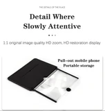 - PULL-OUT AND FOLDING DESIGN: The pull-out design can protect the lens well. HD-screen magnifier storage type with a rotating folding design. If the height is not enough, the height can be adjusted with the ring stand. It is super slim when folded and can also be carried around in your bag. Suitable for indoors, camping, journeys, leisure, anywhere, etc.